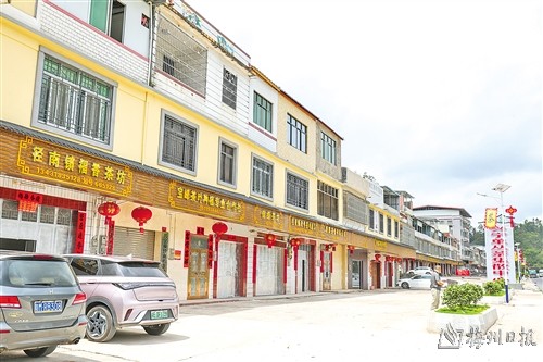 浊水村拥有3140亩茶园和24家茶叶加工厂的资源优势,在产业社区建设中,兴宁市发挥其全国“一村一品”示范村和“兴宁单丛”国家地理标志证明商标品牌效应,盘活浊水村205国道旁多家民房,打造了兴宁单丛茶集散中心,形成大型产品流通交易中心,并融入茶叶种植、技术交流、茶艺培训、直播带货推广等功能,促进产业、文化、旅游及社区功能融合发展。如今,第一批由浊水村经联社托管的八间茶叶门店已入驻并已正常营业,可把径南镇乃至兴宁各地的茶叶集中在一起进行销售。此外,兴宁单丛茶文化馆也正在这里如火如荼地建设中。“兴宁单丛茶集散中心建设以后,茶叶品牌知名度得到提升,吸引了很多外地客户前来品尝和购买。”俊记茶坊负责人李坚华说。