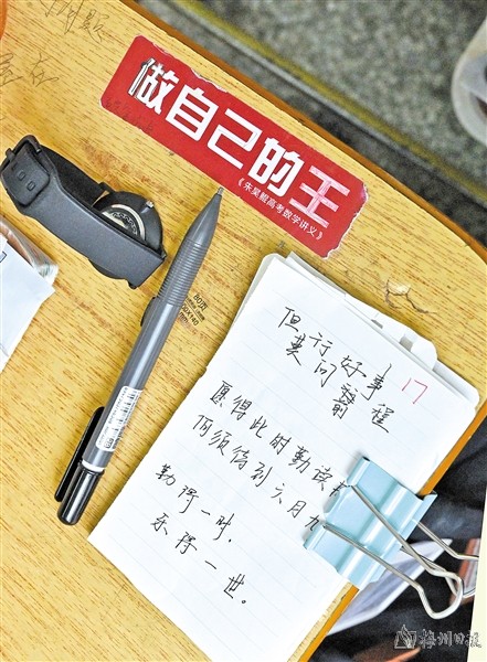“高考进入倒计时,在这个阶段,保持节奏、稳住心态最为重要。”平远中学高三级组长黄宏山告诉记者,近段时间来,该校以引导和鼓励学生保持节奏自由复习为主,既不能临战松懈,也不能考前紧张,要保持平常心去应对即将到来的高考。高三老师们在为学生答疑解难的同时,也时刻关注着学生们的心理状态。“特别是在模考过后,个别成绩不理想的学生可能会出现焦虑、害怕等情绪,这些都需要我们老师多多开导、鼓励。”黄宏山说。