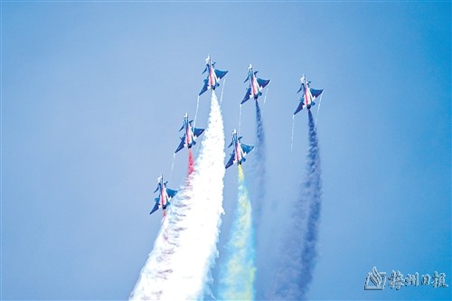 5月25日,中国空军八一飞行表演队在马来西亚兰卡威进行飞行表演。