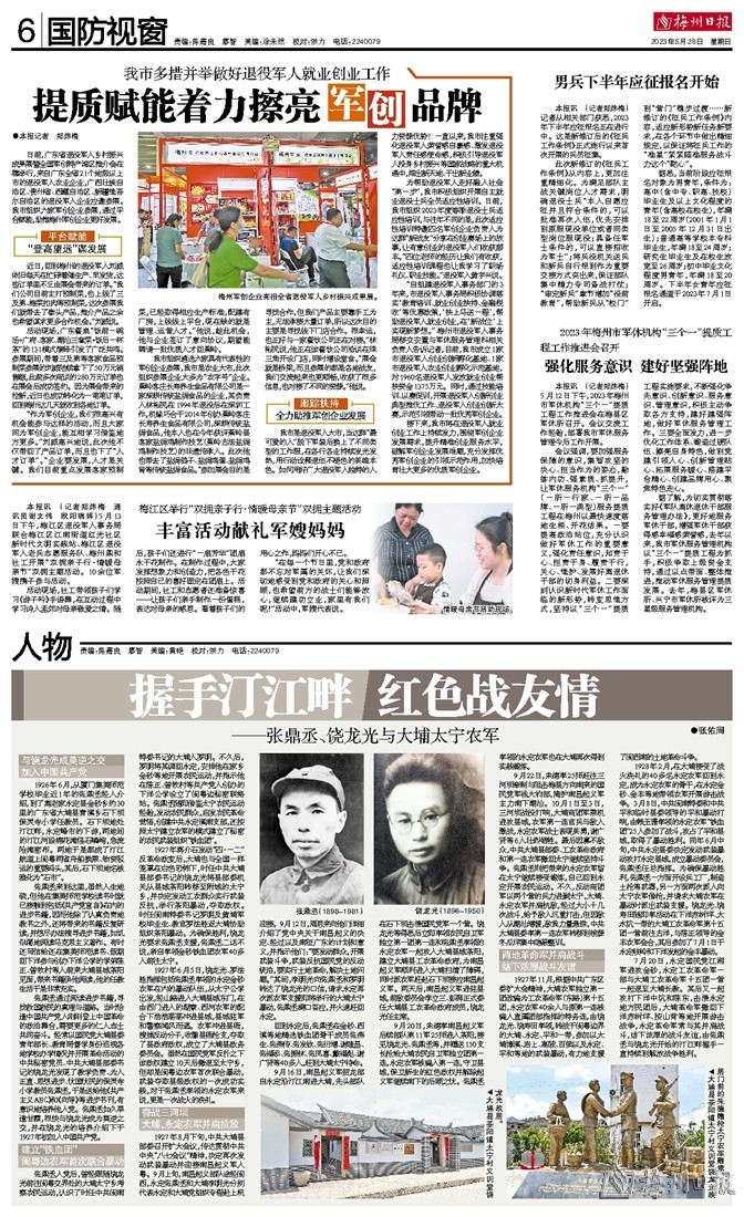 日前,广东省退役军人乡村振兴成果展暨全国军创特产湾区推介会在穗举行,来自广东全省21个地级以上市的退役军人农业企业,广西壮族自治区、贵州省、西藏自治区、新疆维吾尔自治区的退役军人企业应邀参展。我市组织六家军创企业参展,通过平台赋能,助推梅州军创企业更好发展。