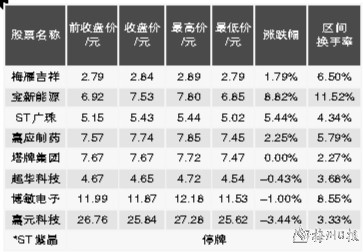 梅州A股上市公司上周股价表现一览
