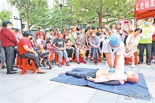 此次活动通过设置展板、发放资料、接受咨询等方式,向市民广泛宣传《人口与计划生育法》《未成年人保护法》、托育政策和育儿知识、婴幼儿预防伤害指南及托育机构的设置标准、管理规范、保育指导大纲、卫生评价标准、消防安全指南等一系列托育服务标准要求。据悉,我市目前有托育机构51家,共设托位3646个,每千人口托位0.93个;建成具有示范效应、可承担一定指导功能的婴幼儿照护服务机构3家,省级示范机构1家。此外,活动还围绕合理膳食、科学补碘、应急救护(如上图,高讯摄)、老年人健康关爱等主题开展科普宣讲,进一步引导市民养成良好的生活习惯,提升健康素养和应急救护能力。