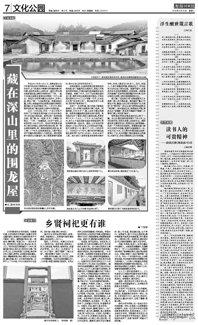 早在2011年的4月21日,我乘坐省公安厅的直升机在执行特殊任务,从大埔飞回梅城的途中,当飞机离开大埔境内来到梅县境内的时候,我突然发现大山深处有一座很大很壮观的客家围龙屋,就顺手用相机拍了下来。一直不知道这座围龙屋具体在哪里?叫什么屋名?前些天当我再次翻出这张照片,好奇心起,要去了解一下这座围龙屋。根据地理位置,从网上地图查找到这座围龙屋就在梅县区雁洋镇三乡沿边村梅丰(峰)。4月29日,我专程来到实地了解这座深山老林中的围龙屋。