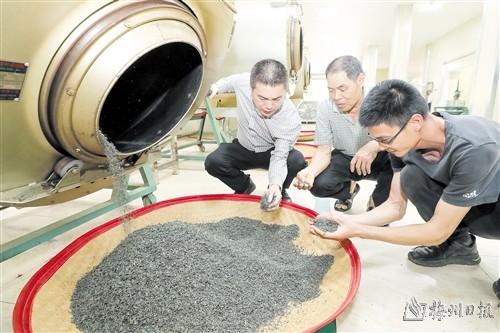 虽然清明过去已经快两个月了,但在位于平远县热柘镇下黄地村的八星客实业有限公司制茶车间里,制茶师钟望仍在忙着制茶,制好的茶叶将统一打包成“八星茶”品牌产品对外销售。去年,该公司4万余斤茶叶销售一空,而今年春茶还未开售,老客户便早早抢着下单了。如今茶叶备受追捧的场面在2021年前是难以想象的,2020年公司出品的4000斤茶叶仅卖出20斤。