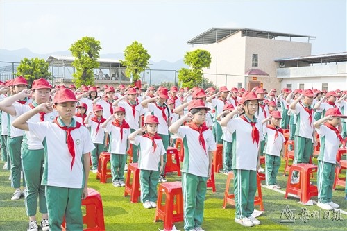 本报讯 6月2日上午,梅县区团委、梅县区教育局、梅县区少工委联合在松口镇中心小学举行“学习二十大 争做好队员”2023年梅县区少先队入队仪式,相关单位负责人、各中小学辅导员代表、松口镇小师生共380余人参加了活动。