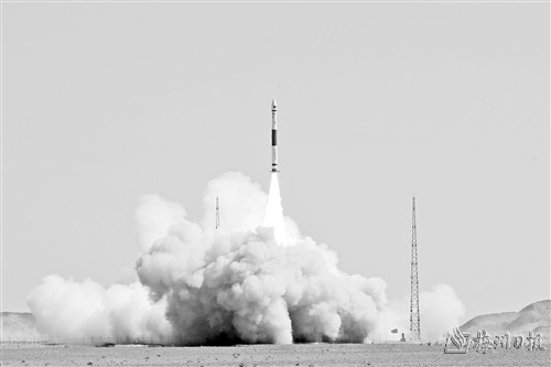 新华社酒泉6月9日电 6月9日10时35分,我国在酒泉卫星发射中心使用快舟一号甲运载火箭,成功将龙江三号试验卫星发射升空,卫星顺利进入预定轨道,发射任务获得圆满成功(如上图,新华社发)。