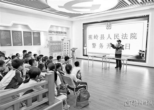 据悉,蕉岭法院主动作为,积极探索将普法宣传方式由“灌输式”向“体验式”转变,与县教育局谋划共建蕉岭县中小学生法治教育实践基地及模拟法庭,打造涵盖观影、阅览、互动、体验等多项功能的体验式法治文化阵地集群,努力缩短青少年学法“距离”。