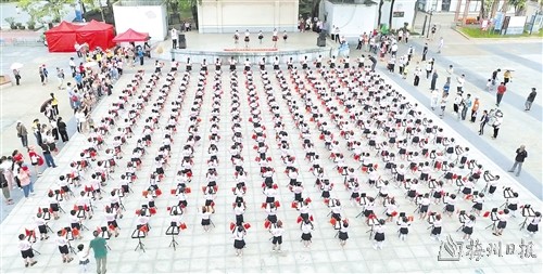 本报讯 日前,国际少儿艺术小钟琴协会梅州分会在市足球文化公园广场举办小钟琴汇演,来自各县(市、区)的200多名幼儿园小朋友同台为市民奉献了一场精彩的视听盛宴(如上图,李龙摄)。