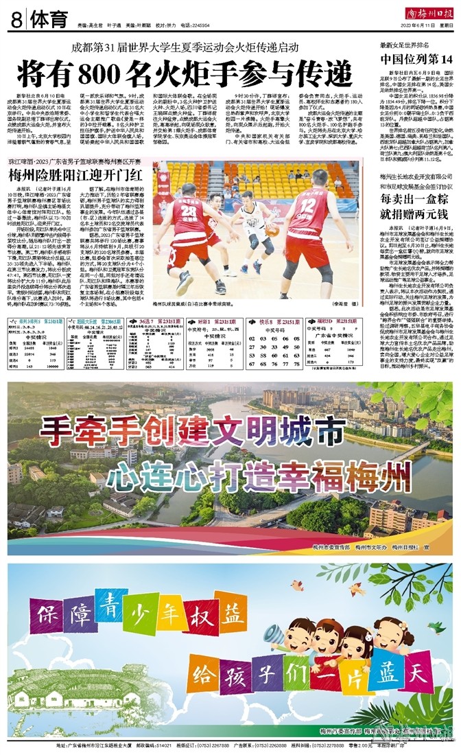 本报讯 (记者叶子通)6月10日晚,珠江啤酒·2023广东省男子篮球联赛梅州赛区首场比赛打响,梅州队坐镇主场梅县文体中心体育馆对阵阳江队。经过一番激战,梅州队以73∶70加时战胜阳江队,迎来开门红。
