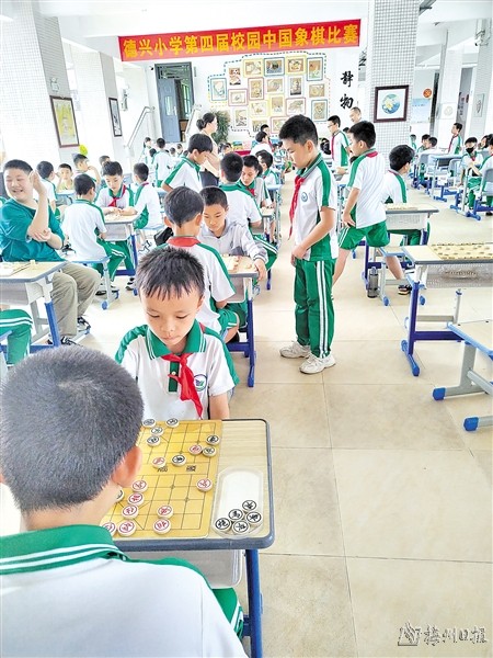 日前,作为迎接六一国际儿童节的系列活动之一的梅县区德兴小学第四届中国象棋比赛在该校举行,全校八十多位选手参加了比赛,最终产生了一二三等奖若干名。图为比赛现场。(曾文东)