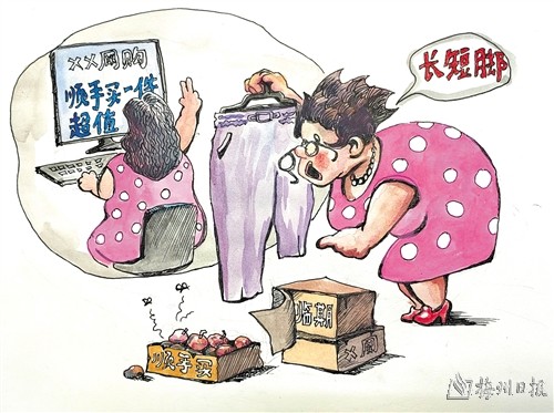 最近,不少网友对多个购物平台新推出的“顺手买一件”功能提出质疑,称以“优惠价”加购的商品其实并不优惠,甚至定价高于直接购买价格。还有消费者反映,“顺手买一件”的商品还存在质量差、缺斤少两等问题。业内人士表示,“顺手买一件”推荐的商品不让消费者查看价格和详情,涉嫌侵害消费者知情权,应该督促整改。林勉/图