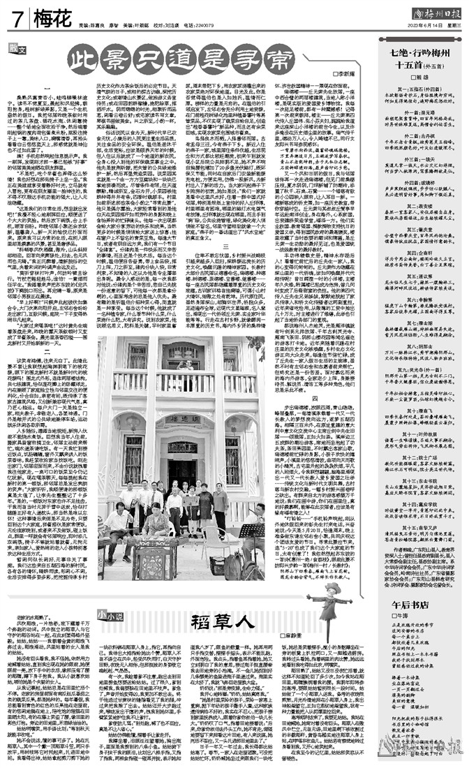 “叮铃铃……”手机铃声响起,刚从外地休假回来的彭先生打来电话,兴奋地说:今天是5月20日,恰逢周末,晚上准备做东请左邻右舍小聚,共同庆祝这个团结友爱的节日。寻常此景应节来,连“5·20”也成了我们这个大家庭的节日,太有创意了!我忽然想起苏东坡的一首诗《惠州一绝 / 食荔枝》,眼前此景不妨即兴步韵一首《梅州一村/长教村》: