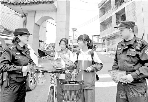 径南派出所充分依托辖区新洲村法治主题公园建设,会同省司法禁毒局驻径南工作组人员,先后在辖区东升、双梧、陂蓬三个村同步建立“村民广场”法治宣传阵地,不断延伸普法触角。发挥各村“警民联络群”“大喇叭”、LED显示屏作用,每天滚动向村民发布、广播反诈、禁毒等普法内容。充分发掘民智民力,组建红枫女子服务队流动开展反诈、禁毒、交通安全等普法宣传,让法治思想渗透到各个村居,影响至各村村民。