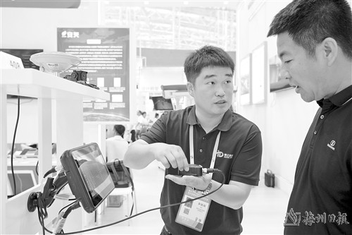 6月15日,参展商在讲解北斗导航农机自动驾驶系统。