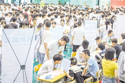 本报讯 (记者吴海清)6月16日上午,梅州市职业技术学校举行2023年学生岗位实习本地企业供需见面会(如上图,吴腾江摄),来自梅州本地63家用人单位提供约1700个岗位,吸引2000余名学生参与。
