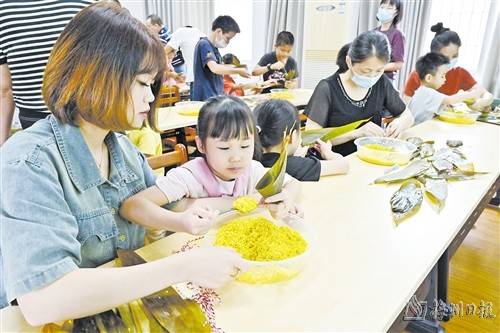 本报讯 (记者张莹娜)6月17日上午,以“粽情端午意 悠悠民俗风”为主题的包粽子活动在梅江区图书馆举行,共有30多组亲子家庭参加。