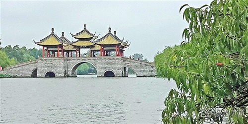 欣赏着长堤婀娜绿柳,尽头就到了徐园。据说,这里是桃花坞的旧址,曾经是桃花成片、灿若云霞的地方,如今只见茂盛的桃林在夏风中摇曳。出徐园,过小红桥,即步入瘦西湖最大的岛屿小金山,这里有风亭、琴室、书屋、月观、关帝殿、乾隆馆等,其中风亭和月观最让人难忘。与小金山相连的是钓鱼台,又名吹台,钓鱼台三面环水每个门洞皆有一景。