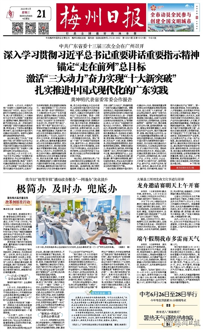 6月15日,我市首批市级政务服务事项“极简办”清单中1454个事项正式实施。“我们率先推进商事登记、工程建设项目、不动产登记、高频民生服务等4大重点领域审批‘极简’改革,围绕‘减时间、减环节、减材料、减跑动’要求,实施即来即办、不见面审批、自助办、免证办、一件事一次办、融合办等6种办理形式。”市政务服务数据管理局局长徐甦说,通过在改革中找问题、找出路,该局持续深化数据共享应用,进一步推动“一码通办”“全帮办代办”“视频办”“跨域通办”,以实际行动擦亮“梅州事好办”特色政务服务品牌,以改革赋能高质量发展。
