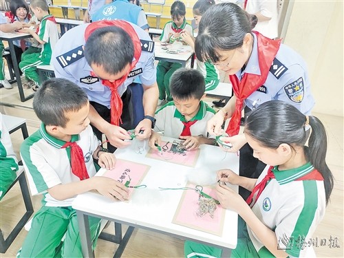 活动中,梅州监狱代表向城东镇中心小学23名困境学生发放爱心助学金,鼓励他们安心读书、努力进取,勇敢追求自己的理想。活动还开展了手工DIY、大手拉小手一起制作粽子香包等活动(如右图,城东镇中心小学供图),让孩子们在愉快的体验中增强社会交往能力,感受到党和社会大家庭的关心关怀。