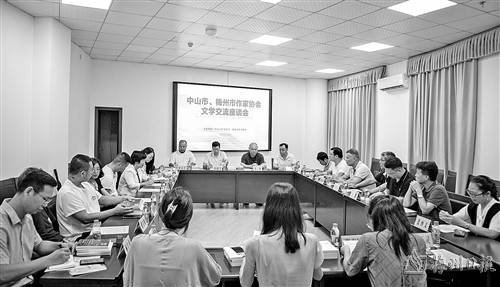 本报讯 (记者李少凤)6月18日下午,中山市、梅州市作家协会文学交流座谈会暨结对共建签约仪式在市华侨博物馆会议室举行。中山市文联副主席、中山市作家协会主席马拉,梅州市客家文学院院长、梅州市作家协会主席陈柳金,中山、梅州市作协相关负责人和作家代表20多人参加了活动。