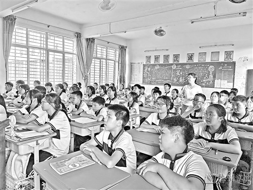 “What's he doing?”“He's using the computer.”在初一(3)班的教室里,同学们争先恐后地抢着回答问题,气氛非常活跃。(如图,吴辉燕摄)“从小学升到初中,学习环境变了,要学的科目多了,是黄老师让我们从有所畏惧到勇于自我挑战、大胆表现。”学生林菲有感而发。这位学生口中的黄老师就是平远县田家炳中学教师黄小芬,被评为2023年第一季度“梅州好人”。