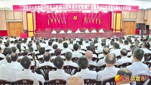 本报讯 6月25日,全县副科级以上领导干部学习贯彻习近平总书记视察广东重要讲话、重要指示精神专题研讨班开班,会议深入学习贯彻习近平总书记视察广东重要讲话、重要指示精神,认真贯彻落实省委、市委工作部署,全面梳理事关五华发展大局的重大课题,研究完善推进中国式现代化五华实践的思路举措,引领带动全县上下学习宣传贯彻工作走深走实。县委书记朱少辉作开班动员讲话暨主题报告,县委副书记、县长丘炀主持开班式。