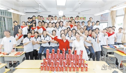 下午4时,距离考试结束还有20分钟,市民蒋女士带着一枝向日葵来到嘉应中学考点外等候女儿,她说,这是她第一次买花送给女儿,希望女儿未来的人生像向日葵一样天天向上、天天开心。记者看到,为给学生们的初中生涯画上完美的句号,不少老师和家长们都精心准备了各式各样饱含祝福和期盼的礼物,给学生们制造美好的回忆。“孩子们,这璀璨的满目星河,赋予了面对未来的力量与勇气,大步流星向前冲吧!”梅江区北实新世纪学校老师叶玲利特地给学生定制了“流星球”摆饰当作毕业礼物,寄托着老师们对学生的祝福和牵挂,希望他们能展翅高飞。在东山学校,各班教师都精心准备了附有全班学生姓名的毕业蛋糕,这份特殊的礼物,凝结着深厚的师生情谊。“蛋糕是圆的,希望孩子们以后的生活能够圆圆满满;蛋糕也是甜的,希望他们以后的生活甜甜蜜蜜;蛋糕的‘糕’与‘高’谐音,希望他们以后的工作生活步步高升。”东山学校初三(2)班老师陈微说道。