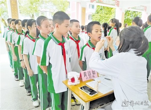 本报讯 (记者王玉婷)6月29日下午,由市关工委、市中医医院主办的“‘基地活动开新花 筛查义诊护少儿’——庆祝建党102周年·文明健康进校园活动”在梅县区程江镇中心小学举行。市关工委主任何正拔、常务副主任陈林荣等参加活动。