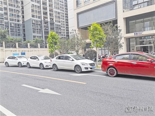 本报讯 (记者朱绮辉)“有些车主在机动车道上乱停乱放,两车道都变成了单车道。”近日,有市民向本报《民生一线》栏目反映,梅城江南东汇城富港客创汇AB座与智慧广场之间的一条支路时常存在停车乱象,不仅市容受到影响,过往车辆通行也存在安全隐患。