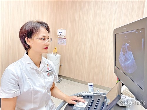 张又红的左手在多普勒彩超机的操作台上熟练地跳跃,执探头的右手则通过不同的扫查角度来确保检查的精准。在行云流水的操作下,显示屏逐渐显现出清晰的超声影像。