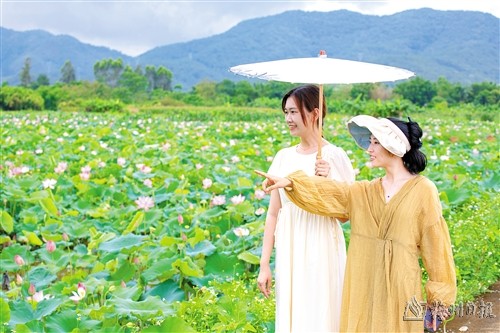 记者了解到,当前,三圳镇以深入实施“百县千镇万村高质量发展工程”为抓手,依托田园乡村和特色资源优势,积极探索发展生态农业,全力推进“旅游+农业”融合发展,提升当地乡村旅游知名度,带动村民增收致富,助力乡村振兴。“接下来,我们将积极引导九岭村立足资源禀赋,充分利用荷花的观赏性发展特色乡村旅游,通过莲子精深加工,延长产业链,提升农产品附加值和品质,同时拓宽增收致富渠道,带动更多农户在家门口就业,实现荷花产业的风景和‘钱景’共赢。”三圳镇相关负责人说。