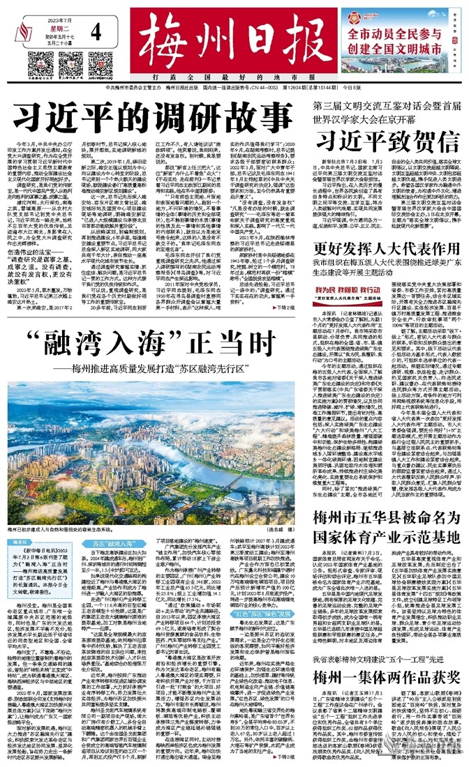 《新华每日电讯》2023年7月3日第6版刊登了题为《“融湾入海”正当时——梅州推进高质量发展打造“苏区融湾先行区”》的长篇通讯。本报今日全文转载,敬请垂注。
