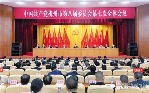 本报讯 (记者罗诚浩 特约记者辜昀玥)7月4日,中国共产党梅州市第八届委员会第七次全体会议在梅城召开。会议以习近平新时代中国特色社会主义思想为指导,深入学习贯彻党的二十大和习近平总书记视察广东重要讲话、重要指示精神,学习贯彻省委十三届三次全会精神,总结上半年工作,进一步深化新时代新征程梅州现代化建设的具体部署,动员全市上下牢记嘱托、感恩奋进,以高质量发展为牵引,加快建设苏区融湾先行区,推动梅州苏区加快振兴、共同富裕,在推进中国式现代化建设中谱写梅州新篇章。市委书记马正勇代表市委常委会作报告。