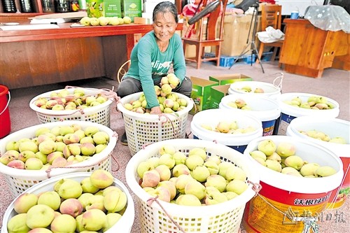 2013年冬,在大坪镇党委政府的牵线搭桥下,振隆庄种养专业合作社与仲恺农业工程学院展开鹰嘴桃种植战略合作。“刚开始这里一片荒凉,光是开垦、配置灌溉等基础设施都花费了不少工夫,在基地建设过程中,镇村也使了不少劲,给予了我们莫大的支持。”朱德际表示,多年来该基地逐步扩大鹰嘴桃种植规模,目前基地种有300多亩鹰嘴桃。今年更是鹰嘴桃丰收年,预计产量较去年翻番,品质较去年更佳,甜度达到16度至18度。“因为我们的鹰嘴桃品质好,所以很多回头客。早在一个月前鹰嘴桃还没完全成熟时,我们就接到了约2000箱订单。”朱德际表示,精品果重量约为4两至6两,今年为了更好地满足顾客需求,该基地推出了4种规格的礼盒装,鹰嘴桃销往全国各地。