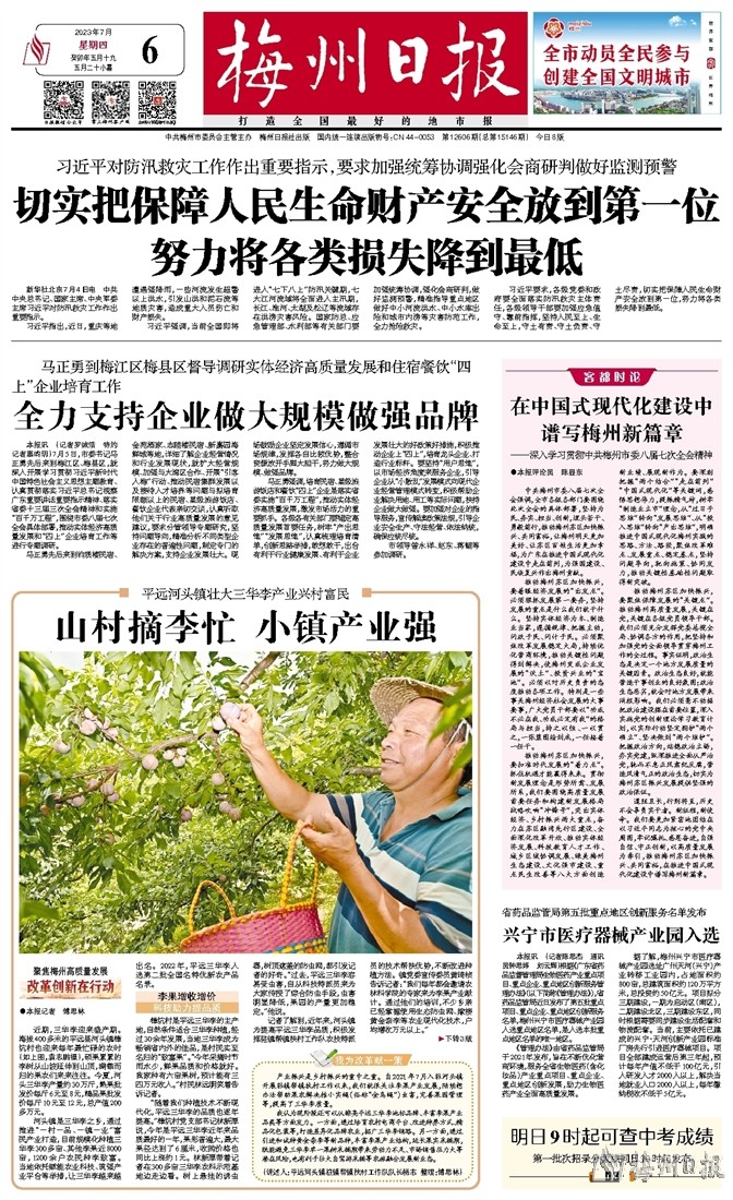 河头镇是三华李之乡,通过推进“一村一品、一镇一业”富民产业打造,目前规模化种植三华李300多亩、其他李果近8000亩,1200余户农民种李致富。当地依托赋能农业科技、筑强产业平台等举措,让三华李越来越出名。2022年,平远三华李入选第二批全国名特优新农产品名录。