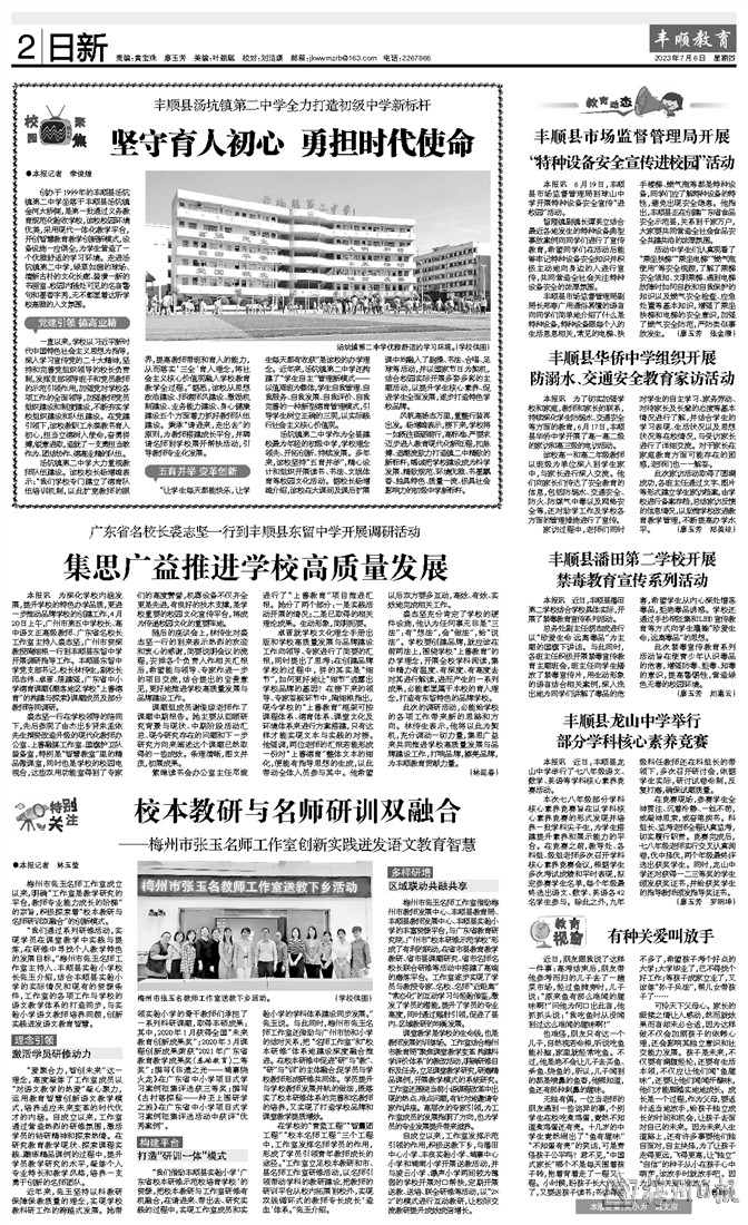 此次的调研活动,必能给学校的各项工作带来新的思路和方向。林传生表示,他将以此为契机,充分调动一切力量,集思广益来共同推进学校高质量发展与品牌建设工作,打响品牌,擦亮品牌,为丰顺教育贡献力量。