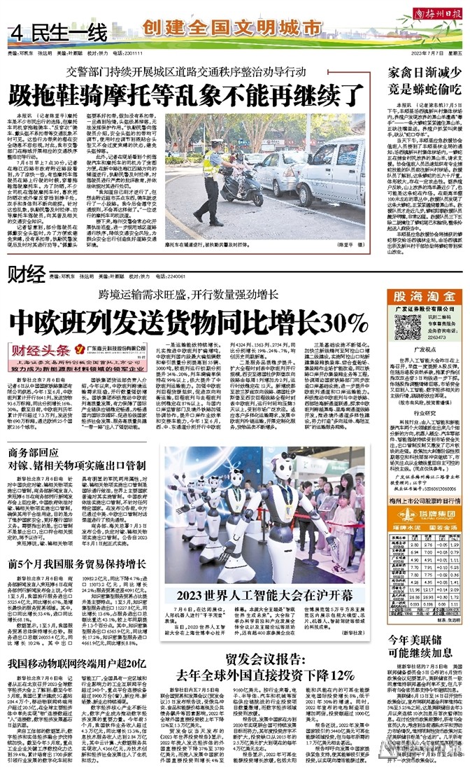 一是运输能效持续增长。扎实推进中欧班列扩编增吨,中欧班列国内段最大编组辆数和牵引质量分别提高到55辆、3000吨,较班列运行初期分别提升34%、20%,列车满编率保持在99%以上,极大提升了中欧班列运输能力。加强中欧班列回程货源组织,促进双向均衡运输,回程班列与去程班列比例稳定在87%以上。与国内口岸监管部门及境外铁路加强协调协作,提升口岸作业效率和交接车能力,今年1至6月,西、中、东通道分别开行中欧班列4324列、1563列、2754列,同比分别增长19%、24%、7%,均创历史同期新高。
