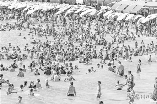 7月6日,人们在埃及亚历山大的海边游玩消暑。