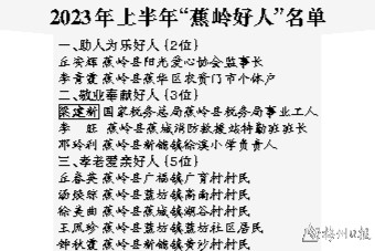 本报讯 为培育和践行社会主义核心价值观,选树道德典型,弘扬传统美德,蕉岭县文明办组织开展了2023年上半年“蕉岭好人”推荐评选活动。经各镇、各系统党委,县委教育工委以及县直相关主管部门广泛发动、层层推荐,县文明办严格把关、网上公示、组织召开评审会,确定丘安辉等10位同志为2023年上半年“蕉岭好人”。
