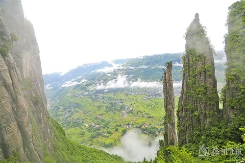 雨中登恩施大峡谷,其云海相比黄山云海,少了层叠的山峰,却多了惟妙惟肖的石柱;相比泰山云海,少了帝王的贵气,却多了土家族的风情。“山重水复疑无路,柳暗花明又一村。”原来不仅是地理的,更是心理的;不仅是视线的,更是视野的。