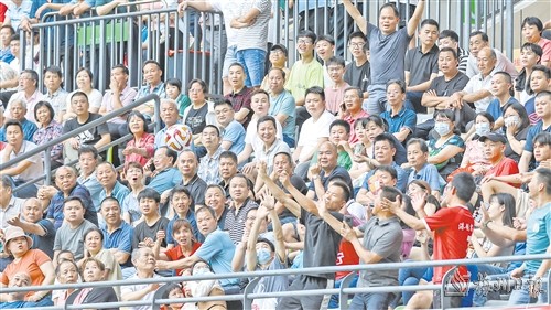 像徐秋芳一样既要看球,又要游、购、娱的球迷还有很多。每当到了比赛日,五华这座县城就会涌入大批来自全国各地的球迷朋友,城市车水马龙,好不热闹。五华惠堂体育场外也有许多身着球衣、佩戴各种装饰品的球迷在拍照打卡,大街小巷处处散发着浓郁的足球氛围。