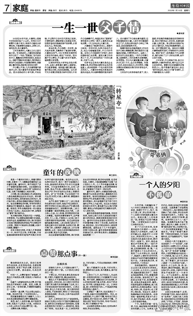 小时候,我父亲在梅城工作,家里其他人都在梅县最边远的乡村生活。那时候村里没有通电,因而家里也没有电灯,我们每天晚上都是在昏暗的煤油灯旁度过的。每当夜幕降临的时候,爷爷奶奶便点亮煤油灯忙着做家务,准备好一家人的晚餐。晚饭后,爷爷点亮家里唯一的大煤油灯放在八仙桌上,他坐在桌子旁,边喝茶边“督导”我们做作业。