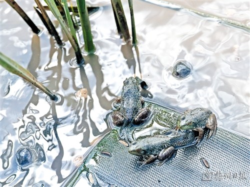 目前,悦来村“稻蛙共生”基地占地约110亩,主要养殖黑斑蛙蛙苗,养殖周期约4个月。“现在我们第一批蛙苗已经‘上岸’了,每隔一天就有养殖户来收购,市场价格每斤20元到30元之间,销路也很广,全国各地的客户都有。”蓝中东告诉记者,他们一年至少可以养殖两批次的黑斑蛙蛙苗,产量大概有30万斤,年产值在800万元以上。