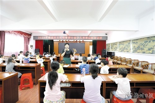本报讯 (记者吴丽伶)日前,梅县区文化馆开设的公益少儿艺术培训班第一期开班,丰富了孩子们的暑期文化生活。