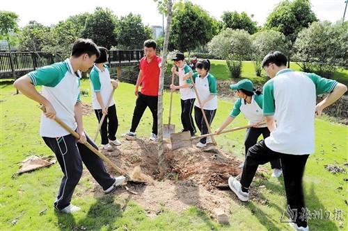 本报讯 近日,五华组织百名优秀高考学子参与绿美广东大行动,在五华县琴江公园旁各自栽下一棵“追梦树”、若干年后,成为一片“追梦林”。