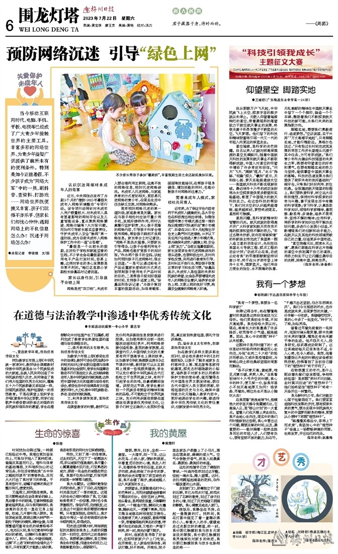 筑牢预防网络沉迷的第一道防线,家庭教育是关键。家长在与孩子相处时应该尽量少用手机,发挥好榜样作用,同时认真履行监护职责,关心孩子观看的网络内容,引导孩子科学合理使用网络,帮助孩子辨别不良网络信息。家长李女士对记者说:“网络不是洪水猛兽,只要家长引导得当,让孩子合理利用电子产品,网络也能扩宽孩子的知识面。”作为两个孩子的宝妈,谈起如何预防孩子沉迷网络时,陈女士说道:“一是可以通过给电子产品设置家长密码的方式来达到限制孩子使用电子产品时间的目的,二是帮孩子规划好假期的时间,支持孩子适度上网。”徐嘉品则告诉记者:“为孩子策划丰富的假期活动,如体育锻炼、画画等技能培训,在帮孩子强身健体、增加技能的同时,也能分散孩子对网络的注意力。”