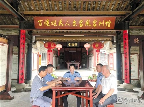 在基层派出所,较常出现的警情之一就是矛盾纠纷。百侯镇是我市首个“中国历史文化名镇”,宗亲文化和“祖训文化”浓厚,民风淳朴,但涉及山林田地、租赁等纠纷时有发生。百侯派出所在县公安局和镇党委领导下,坚持党建引领,积极发展新时代“枫桥经验”,创设了“降温、软硬、疏导、对比、分合、冰火”结合的“六式调解法”和“涌哥调解工作室”,将蕴含客家“和”文化的家风家训巧妙融入矛盾纠纷调解中,将隐患化解在萌芽状态,确保小事不出村、大事不出镇、矛盾不上交。