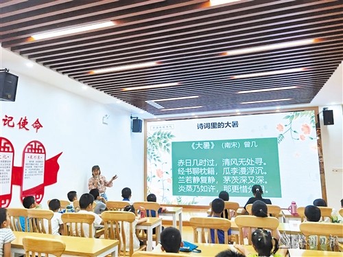 “大暑三秋近,林钟九夏移。”活动现场,老师形象生动地介绍了大暑的习俗和文化,让孩子们感受大暑的节气特点和风俗习惯,了解历朝历代有关大暑的趣味故事。“为了弘扬中华民族的优秀传统文化,传承中华美德,让民族文化根植于每个孩子的心田,我们以节气为切入点,让孩子们在活动中体验、感悟、激发民族自豪感。”梅县区图书馆馆长陈浩勤说。