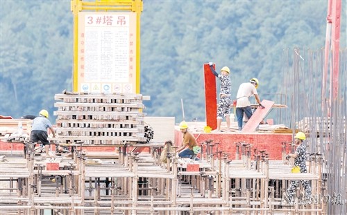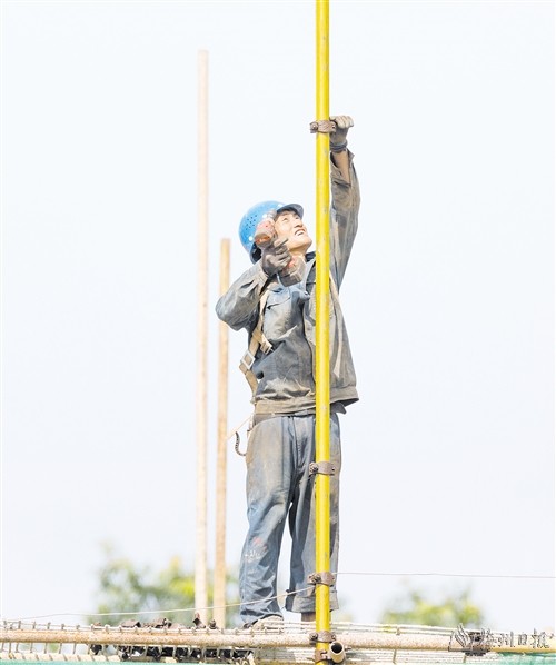 在高温酷暑天气下,梅龙高铁建设工人们战高温、忙施工、保进度,齐心协力推进项目工程建设。在梅县区南口镇曾屋大桥架梁施工现场,尽管才上午9时,毒辣的太阳还没有开始全方位“烹煮”,但施工现场没有任何遮挡,户外作业的工人们早已浑身湿透,用他们自己话说,夏季施工,身上就没有干过,一天下来,衣服上挂的盐霜也有不少。