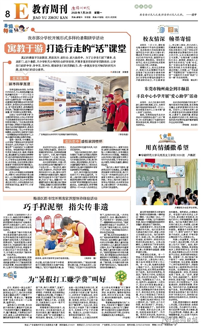 真正的课堂不仅在教室,更在远方、在社会、在大自然中。为了让学生们放下课本、走出家门,这个暑假,不少学校充分利用社会研学场馆,开展丰富多彩的研学实践活动,让学生们在研中学,学中思,思中行,锻炼学生们的实践能力,进一步激发学生对知识的探究兴趣,提升他们的综合素养。